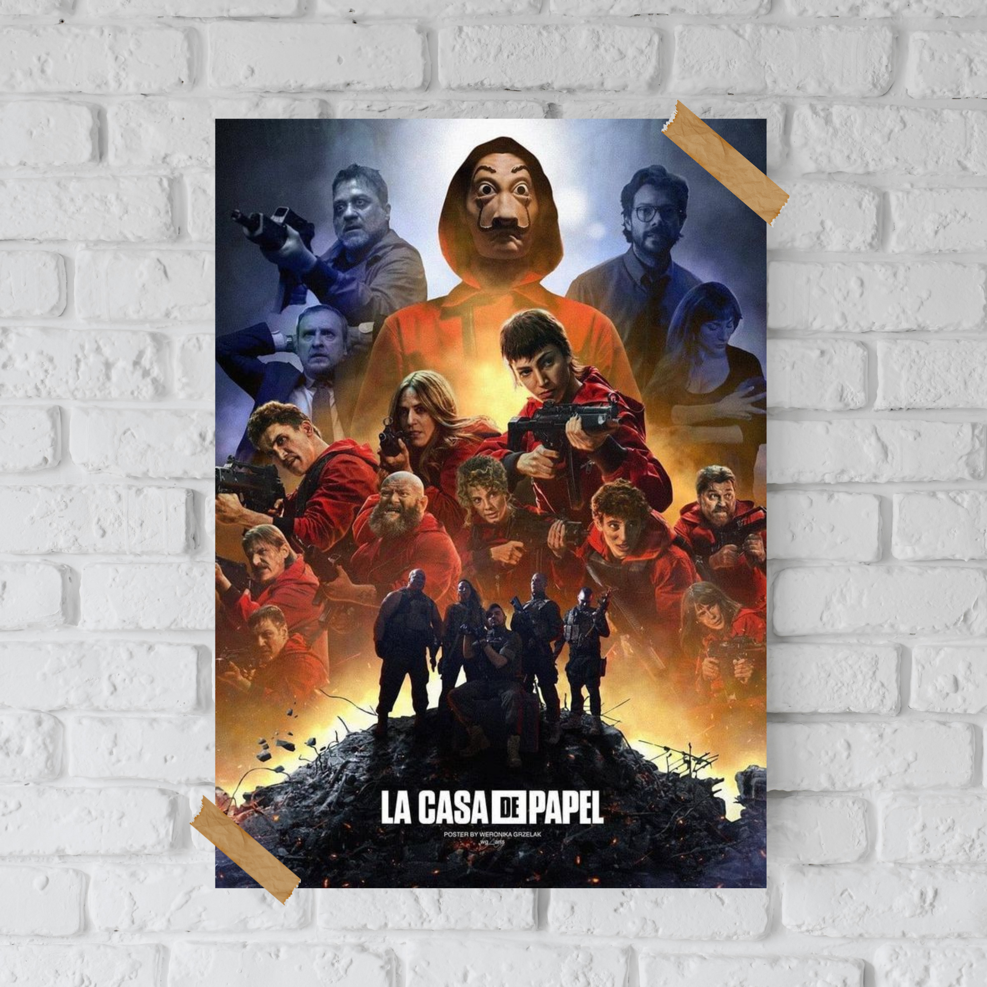 Artwork featuring the unforgettable moments and characters of Money Heist, printed with precision for an immersive experience.